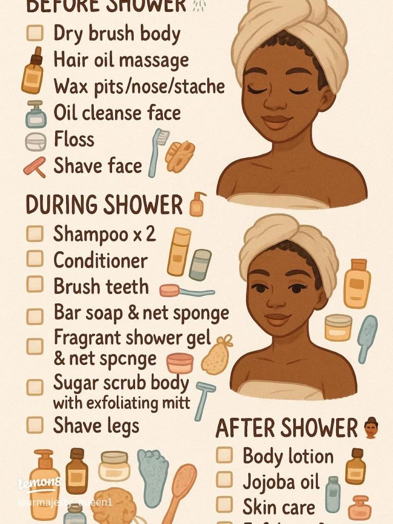 Before shower, remove makeup and cleanse gently. This prevents clogged pores and preps skin for deeper cleaning. Avoid heavy products pre-shower to let water rinse impurities well.